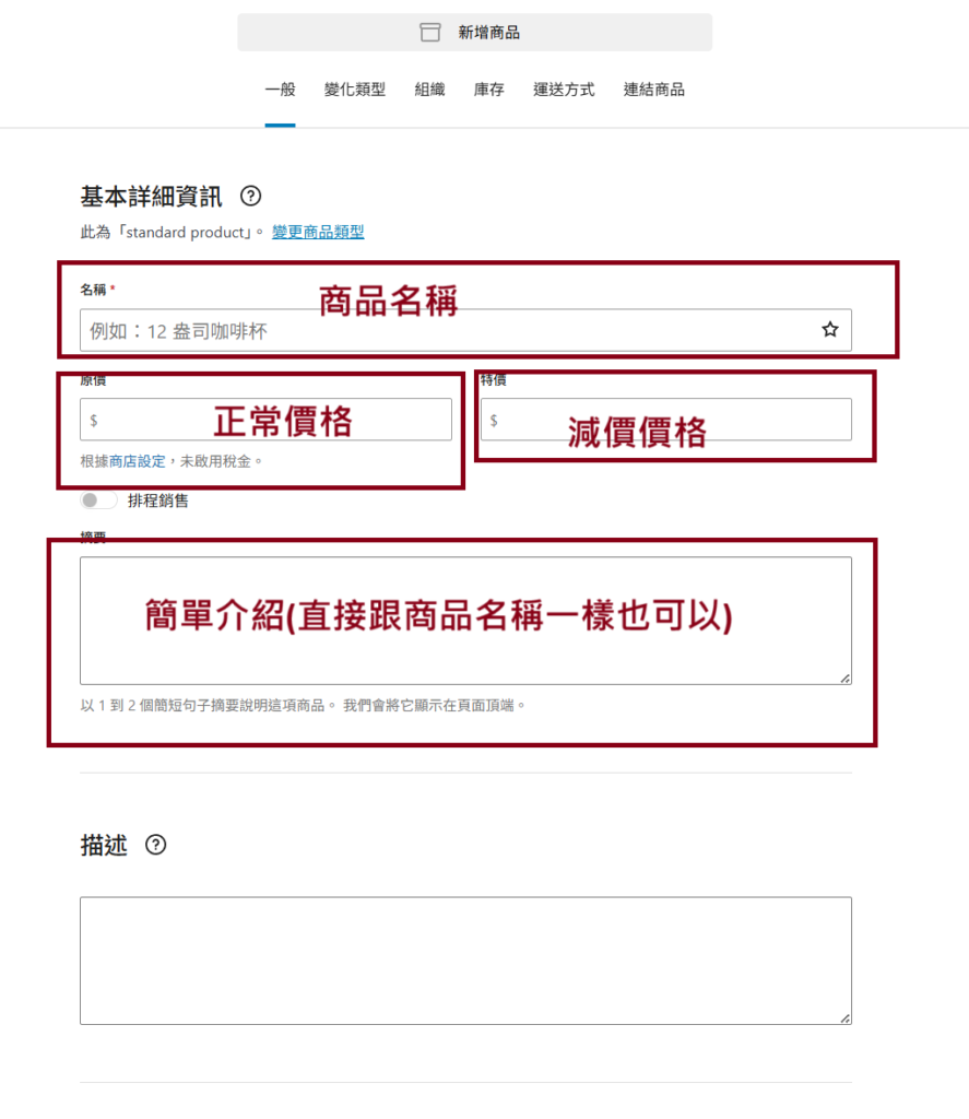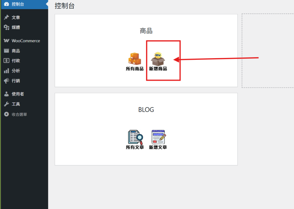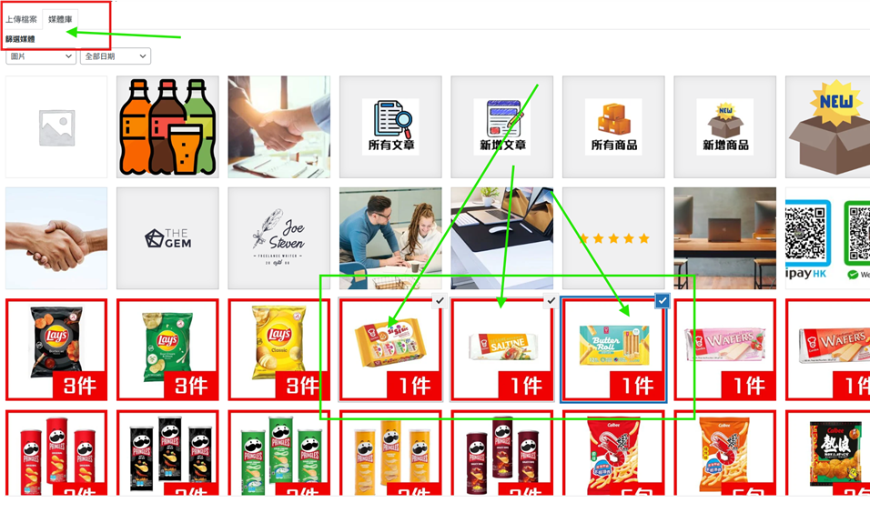 可以上載或在媒體庫內選擇你想顯示的商品圖片