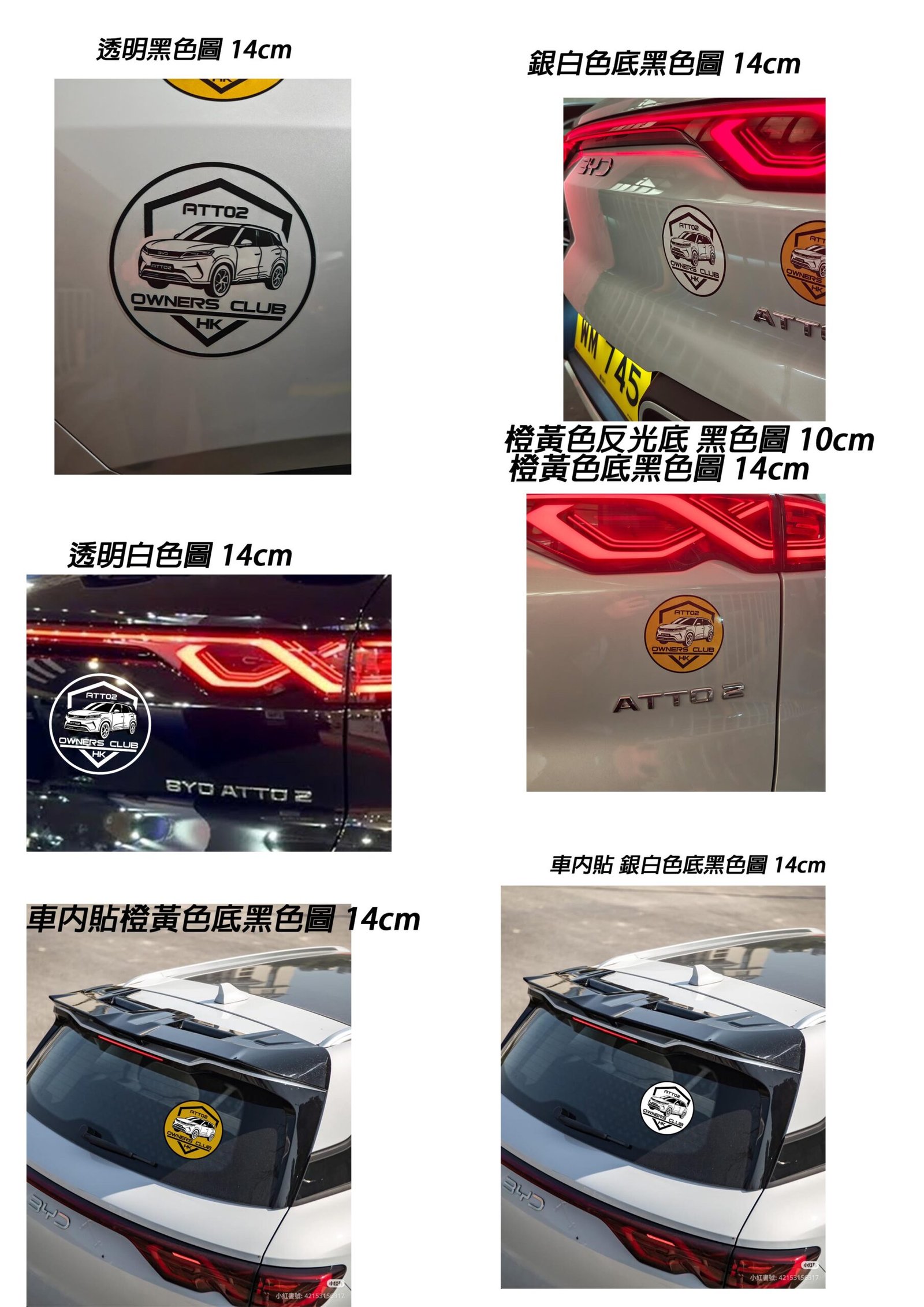 透明白色圖 14cm, 透明黑色圖 14cm, 銀白色底黑色圖 14cm, 橙黃色反光底黑色圖 14cm, 橙黃色反光底 黑色圖 10cm, 橙黃色底黑色圖 14cm, 全套7件